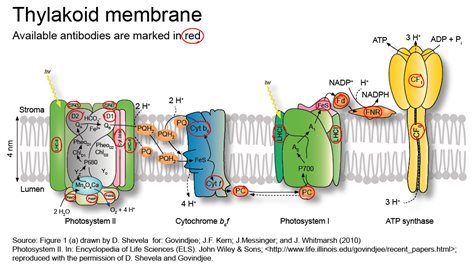 光合色素吸收光能后,把能量聚集到反應(yīng)中心(葉綠素a分子),引起電荷分離和光化學(xué)反應(yīng)。一方面將水氧化,放出氧氣;另一方面把電子傳遞給輔酶II(NADP+),將它還原成NADPH,其間經(jīng)過(guò)一系列中間載體。光合電子傳遞的主要載體有質(zhì)體醌(PQ)、細(xì)胞色素b6(Cytb6)、質(zhì)藍(lán)素(PC)、鐵氧還素(Fd)、Fd-NADP還原酶(FNR)。目前普遍接受的光合電子傳遞途徑為Z形方案,認(rèn)為光合電子傳遞鏈?zhǔn)怯?/span>PSI和PSII以及連接兩個(gè)光系統(tǒng)的一系列電子載體組成,電子傳遞鏈上各個(gè)載體按其氧化還原電位高低,成Z形串聯(lián)排列。電子傳遞載體相關(guān)抗體見下表(僅列舉部分產(chǎn)品):