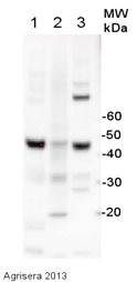 ?      免疫原:ca. 100 amino acids of recombinant actin conserved more than 80% in Arabidopsisthaliana: actin-1 P0CJ46  AT2G37620,actin-2 Q96292 AT3G18780,actin-3 P0CJ47AT3G53750,actin-4 P53494 AT5G59370,actin-5 Q8RYC2 At2g42100,actin-7 P53492 At5g09810,actin-8 Q96293  AT1G49240 ,actin-11 P53496 ,AT3G12110 ,actin-12 P53497 AT3G46520