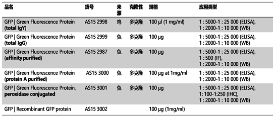 3、 GFP相關抗體及重組蛋白
