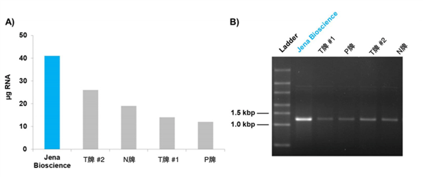 - 產量高,在20 μl反應條件下,可得到30~50 μg RNA