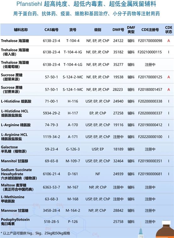 本次論壇西美杰將重點展出Pfanstiehl將高純度低內(nèi)毒素注射用糖類及氨基酸等十余種輔料產(chǎn)品。
