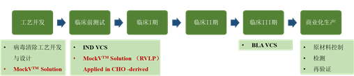 當前,大多數(shù)的生物藥企開展除病毒驗證普遍選擇專業(yè)的病毒清除驗證服務商,如生物制品檢定研究所,CRO/CMO或布局生物醫(yī)藥的三方檢測公司或相關(guān)濾器制造商等。一方面,開展除病毒驗證業(yè)務需要嚴格的生物安全等級的病毒實驗室,必須按照病原微生物防護水平申請P2備案,另一方面,此工作業(yè)務的展開也需要縮小模型儀器設備的采購,專業(yè)人員的培訓以及實驗室的日常運營等,涉及到從細胞培養(yǎng)建庫,病毒制備純化及工藝檢測驗證等全流程,會耗費相當大的人力物力財力,給生物藥企帶來了額外的經(jīng)濟負擔。為了緩解這一問題,Cygnus MockVTM Solution帶來了前沿的技術(shù)與解決方案,提供了兩種模擬病毒顆粒(MVM-MVP及RVLP),盡可能的模擬出活病毒的理化性質(zhì),使生物藥研究人員在常規(guī)的實驗室內(nèi),輕松實現(xiàn)早期的工藝開發(fā)和工藝表征并對純化工藝步驟完成病毒清除效果預測和數(shù)據(jù)積累,進一步的在開發(fā)階段減輕對于病毒清除驗證服務商的依賴,同時也為藥物盡快上市提供加速度(圖1)。