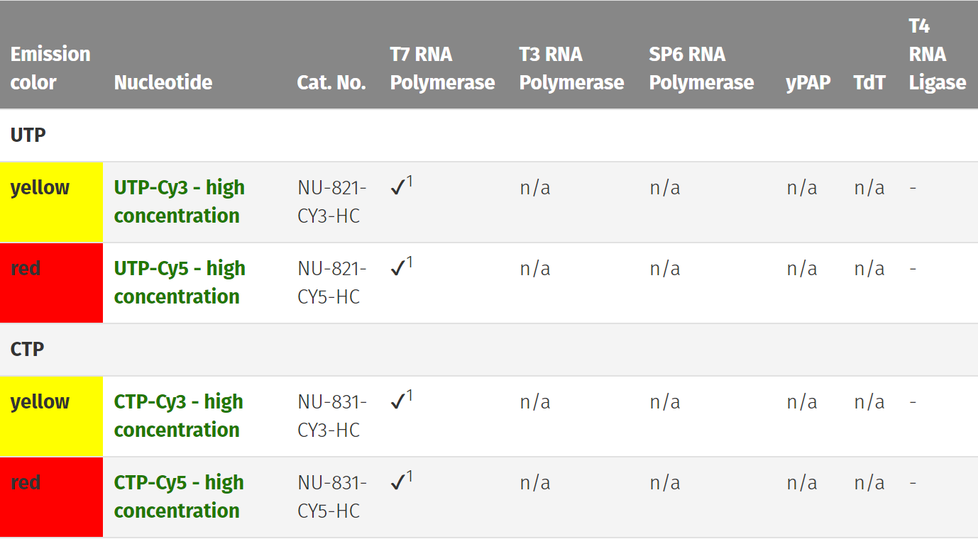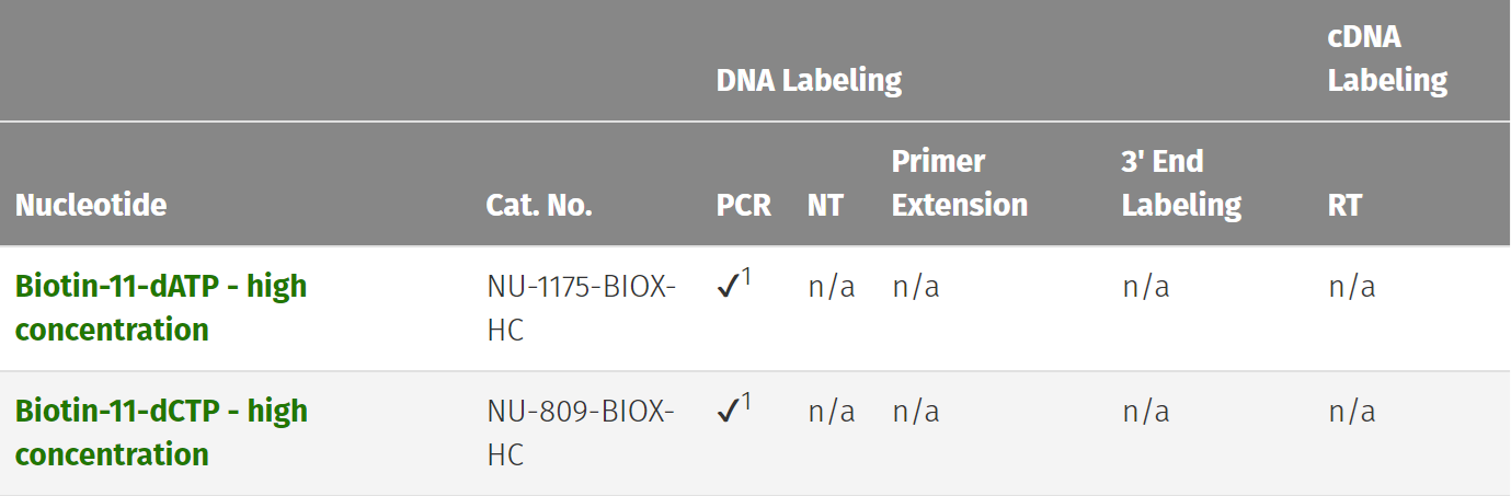 西美杰代理的Jena Bioscience品牌現(xiàn)在能提供用于DNA和RNA非放射標記的濃度為10mM的Cy3-,Cy5- 和濃度為5mM的Biotin- 標記的核苷酸。