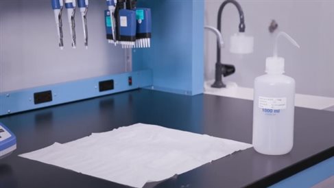 用蒸餾水將20×的濃縮洗滌液稀釋至1×洗滌液裝入洗瓶內,將吸水紙鋪開放在水槽旁邊干凈的工作臺上。
