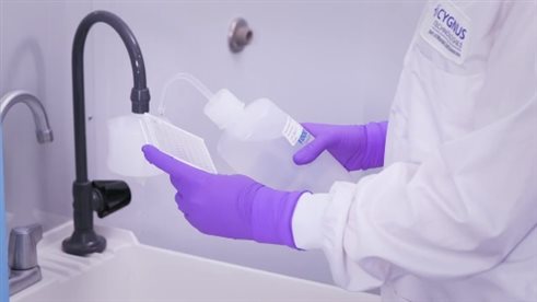 因此,Cygnus專家建議在使用Cygnus ELISA試劑盒時盡量采用手動洗板的方法。該方法簡便易學,無需任何特殊設備。只要準備一些低纖維吸水紙和一個洗瓶就可輕松操作,需要注意的是洗瓶的出水口要修剪成大開口斜面以確保洗液的充分流動與合適的沖洗力度。