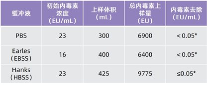 針對(duì)常用緩沖液的內(nèi)毒素清除數(shù)據(jù)