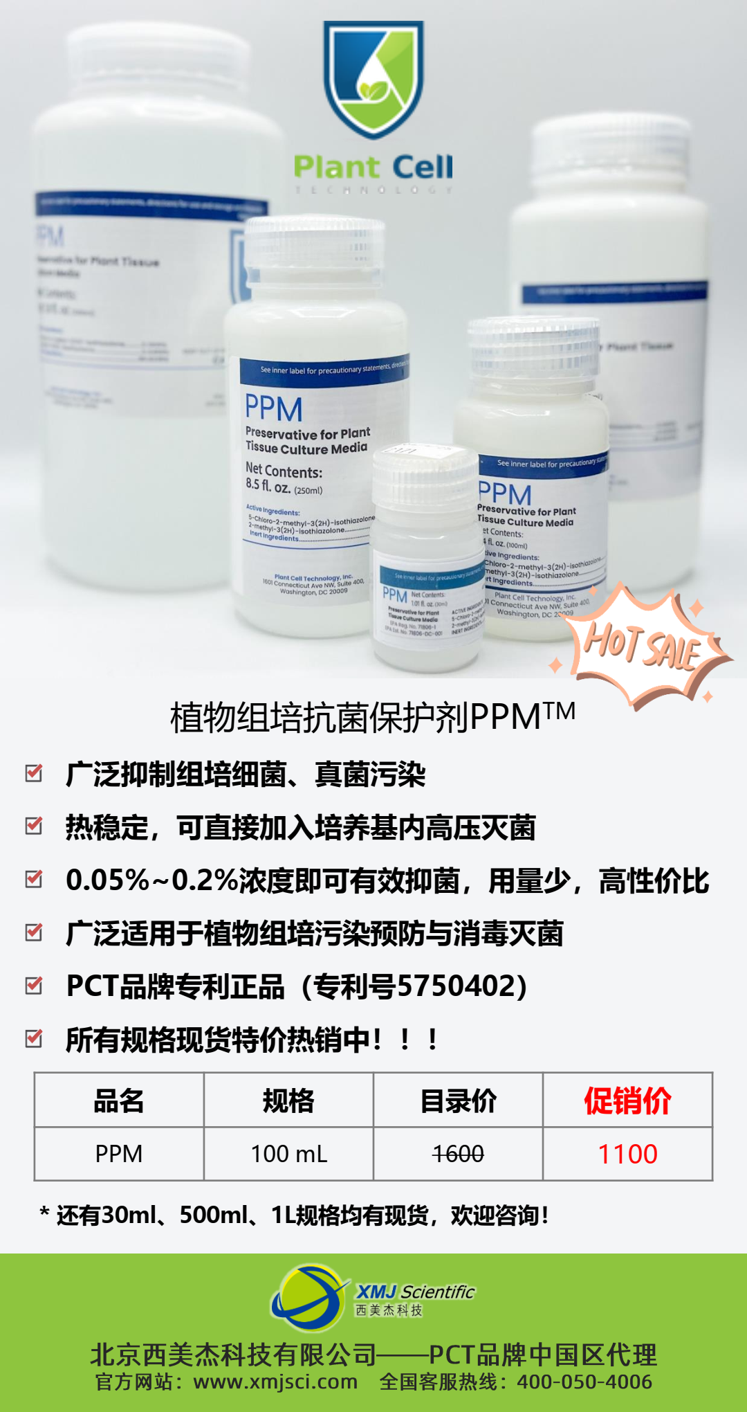 植物組培抗菌保護(hù)劑PPM?現(xiàn)貨促銷(xiāo)100ml特價(jià)1100元